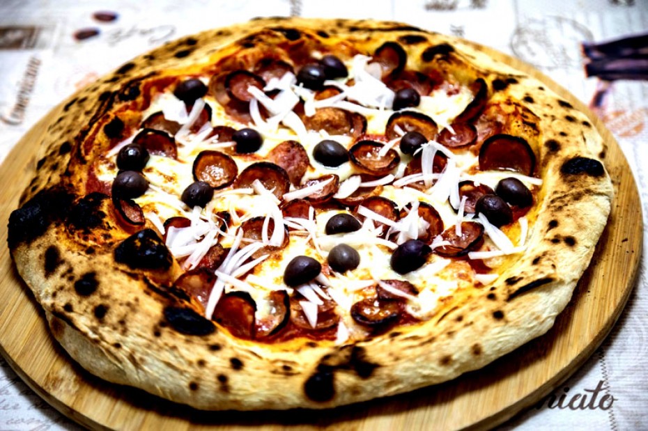 Tomate, mozzarella, figatelli et fromage de chèvre.